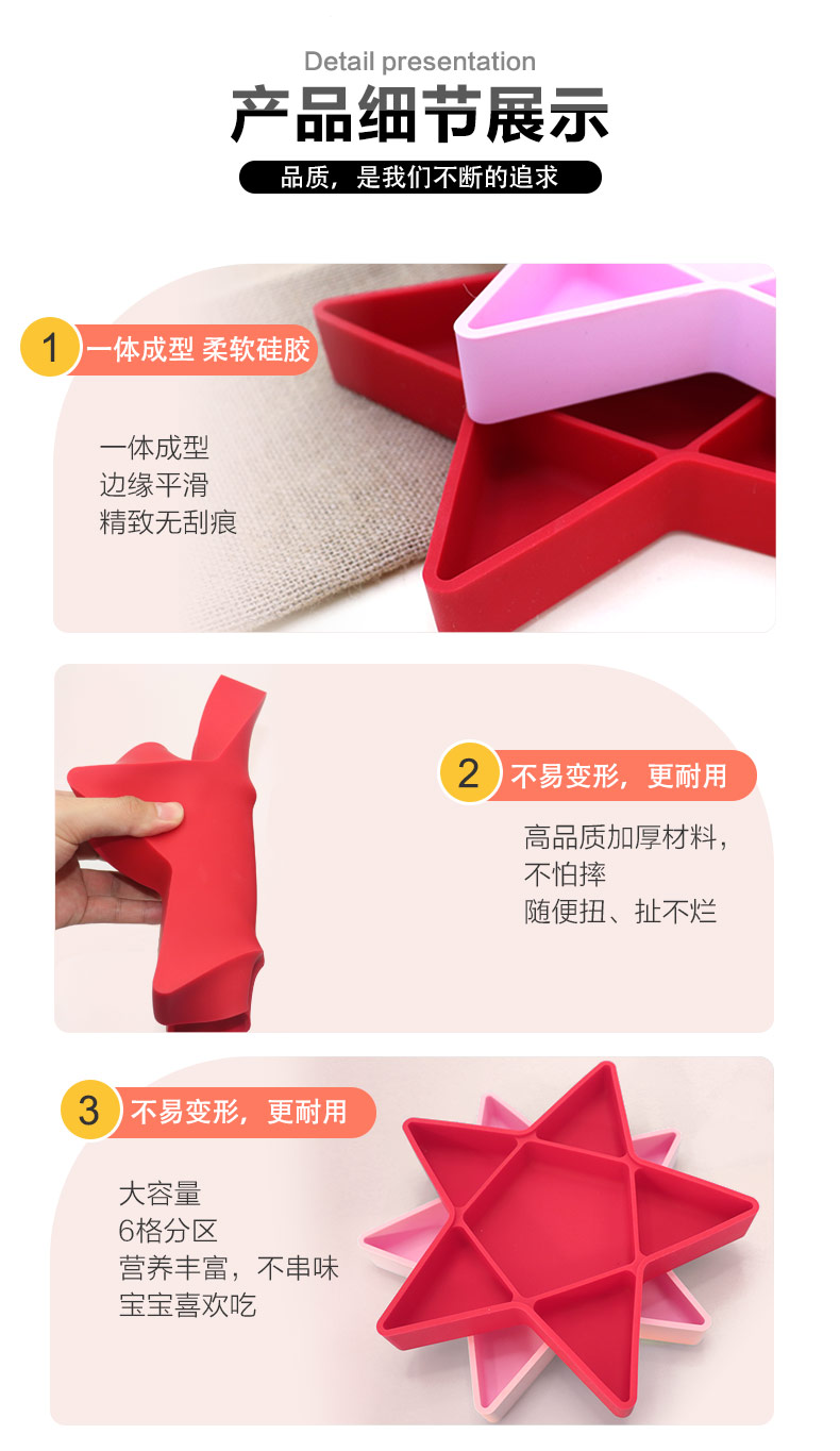 您的位置:首頁(yè) > 產(chǎn)品中心 > 硅膠嬰童用品 > 硅膠碗 > 硅膠兒童五角形狀餐盤(pán) 嬰兒輔食碗 廠家直銷(xiāo)可定制